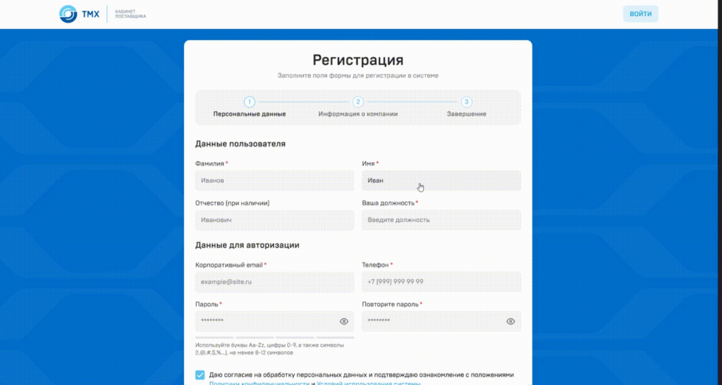 Инструкция по регистрации компании в ТМХ — Кабинет поставщика